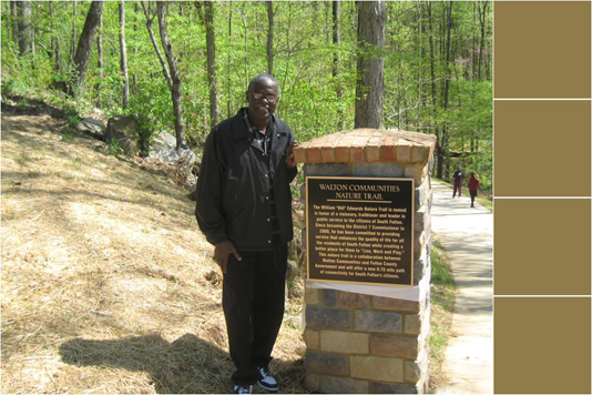 Winter Design proposed the idea of creating such a trail after evaluating South Fulton's Tree Save Program for Walton Lakes. When it was discovered that fitting recompense trees on the site would hinder the growth of new trees, Josh conceived of the trail system which also makes use of marginal land too steep to develop.