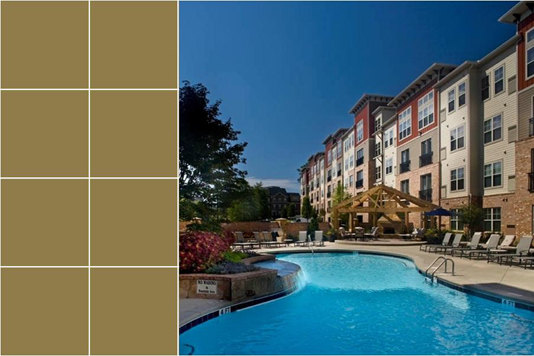 An efficient site plan was developed to include a four-story building, two parking decks and an amenity area. Comprehensive landscape plans included detailed construction drawings for an entry statement, on-site signage, a resort-style pool with water feature, a gazebo made of hand hewn wood, and an outdoor cooking kitchen with stacked stone fireplace. With so many upscale apartment and condo offerings in the area, it was important for Ashwood to have the right presence and an exceptional amenity package.